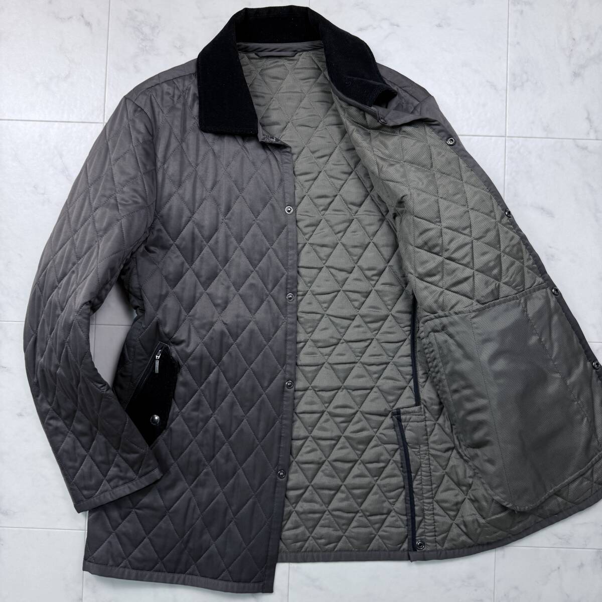 Product name: 美品 XL★ゼニア/Z ZEGNA キルティング ダウン コート ロング丈 ビジネス 襟切替 ジャケット 機能性ポケット 中綿 メンズ ブラック グレー