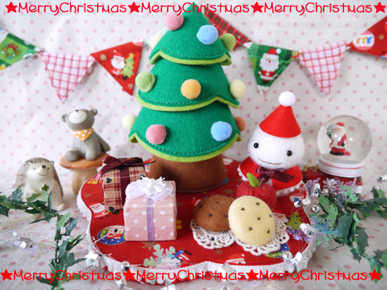 ♪ホールケーキ、ツリー、ゆきだるま、クッキー、りんご、プレゼント、ツリーの台、ガーランドが作れます。