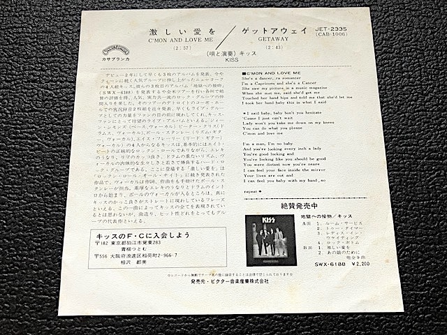 Product name: 【貴重】キッス KISS - 激しい愛を(日本盤シングル・ビクター初期JET規格-¥500)