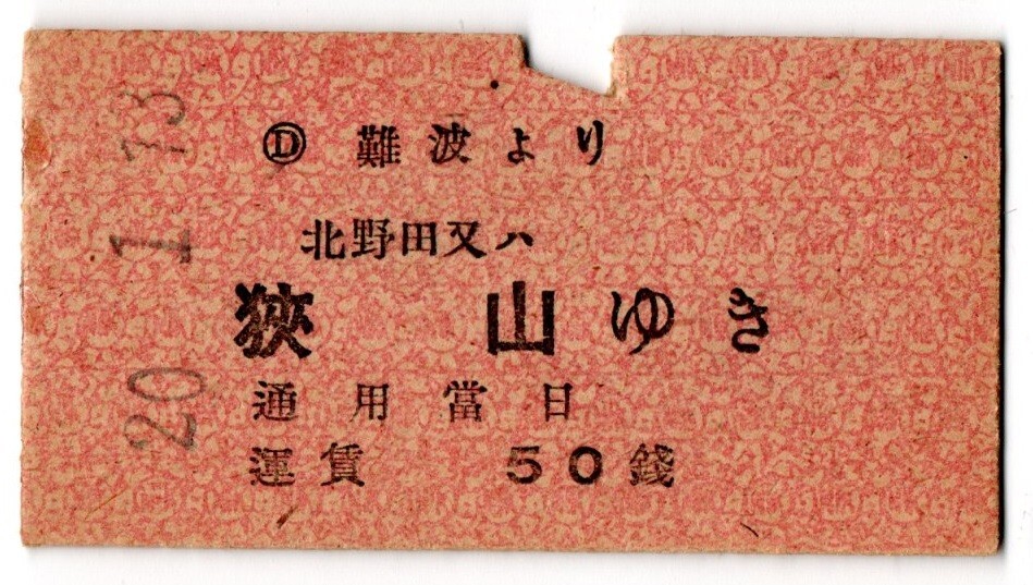 Product name: 戦中 A型券 南海鐡道 難波より北野田又ハ狭山ゆき 50銭 パンチ
