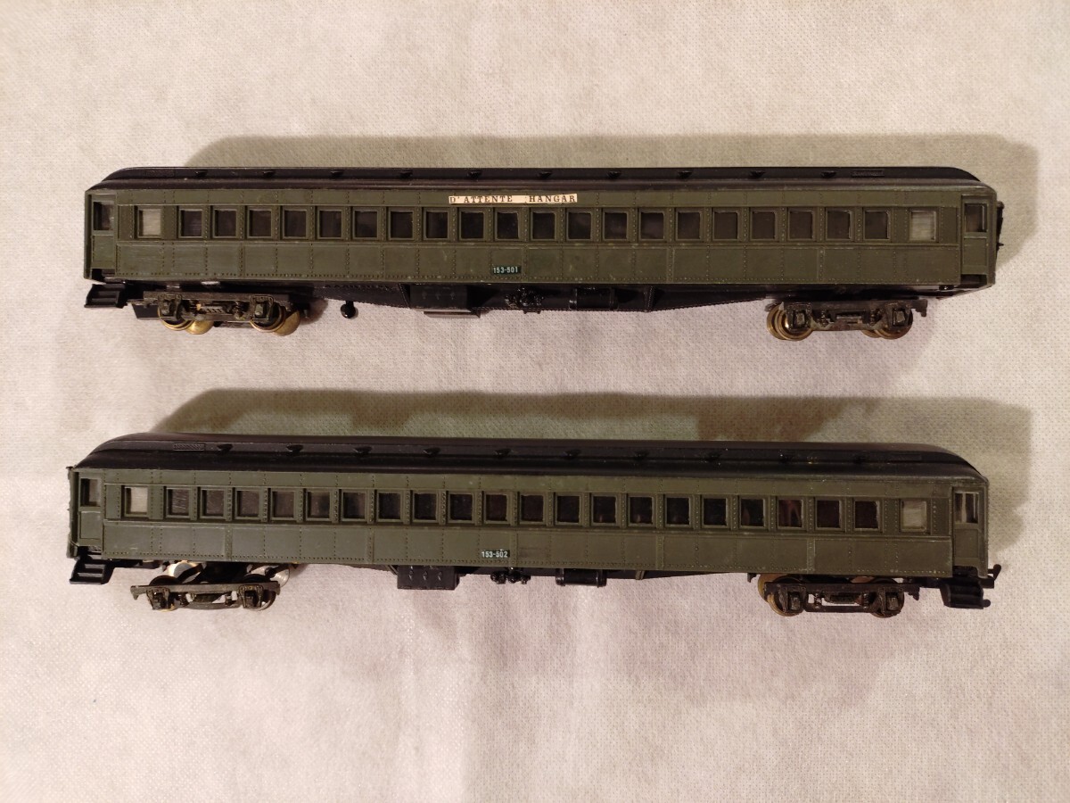 少し前に当オークションで他の車輌と一緒に落札した天賞堂製の樹脂製客車 NYC Standard Coach の2両セットです。元箱はありません。他の車輌が落札目的でしたので、出品することにしました。