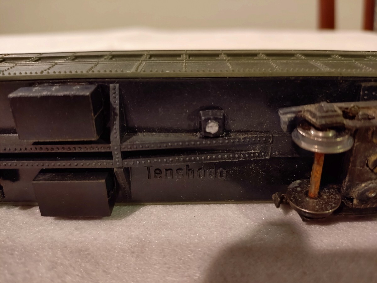 上述の難点がありますが、天賞堂の樹脂(エボナイト)製客車で1952年発売の年代物と思われますので、外国車輌ファンの方やヴィンテージ物を収集されている方にご検討頂ければ幸いです。