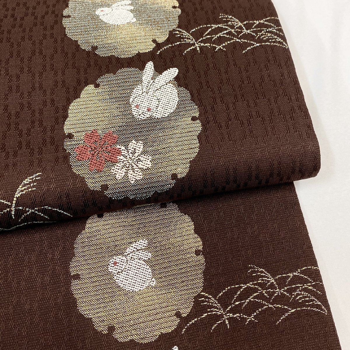 Product name: 着物月花 三幸織物 雪輪 花うさぎ 袋帯 六通柄 正絹 金糸 西陣織物 参考上代280,000円 ob7352