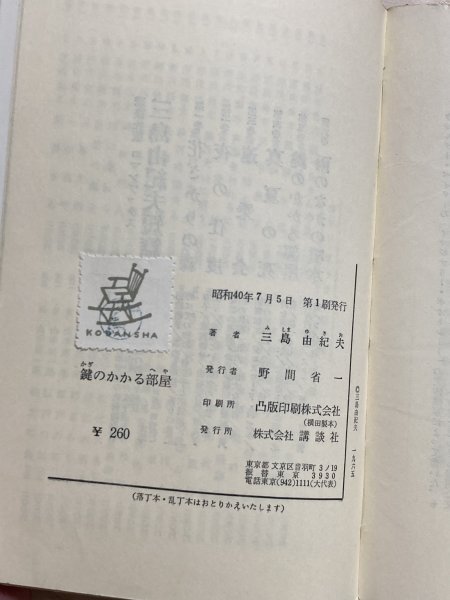 Product name: 鍵のかかる部屋 初版  三島由紀夫