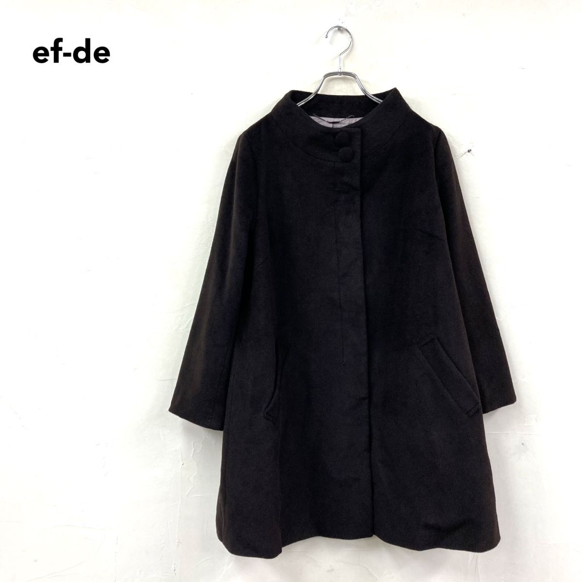 Product name: 2O2435-Q◆良品◆ef-de エフデ ロングコート アウター 無地 シンプル レディース 秋冬◆size 15 ブラウン 茶 アンゴラ ウール キュプラ