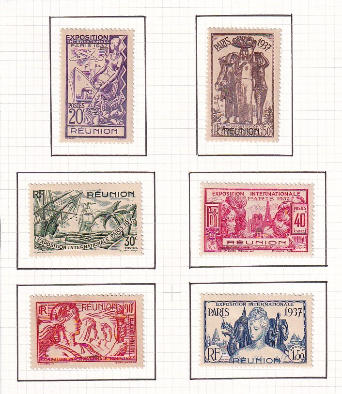 22 レユニオン【未使用】<「1937 SC#167-172 パリ万国博覧会」 6種完 on リーフ切取り >