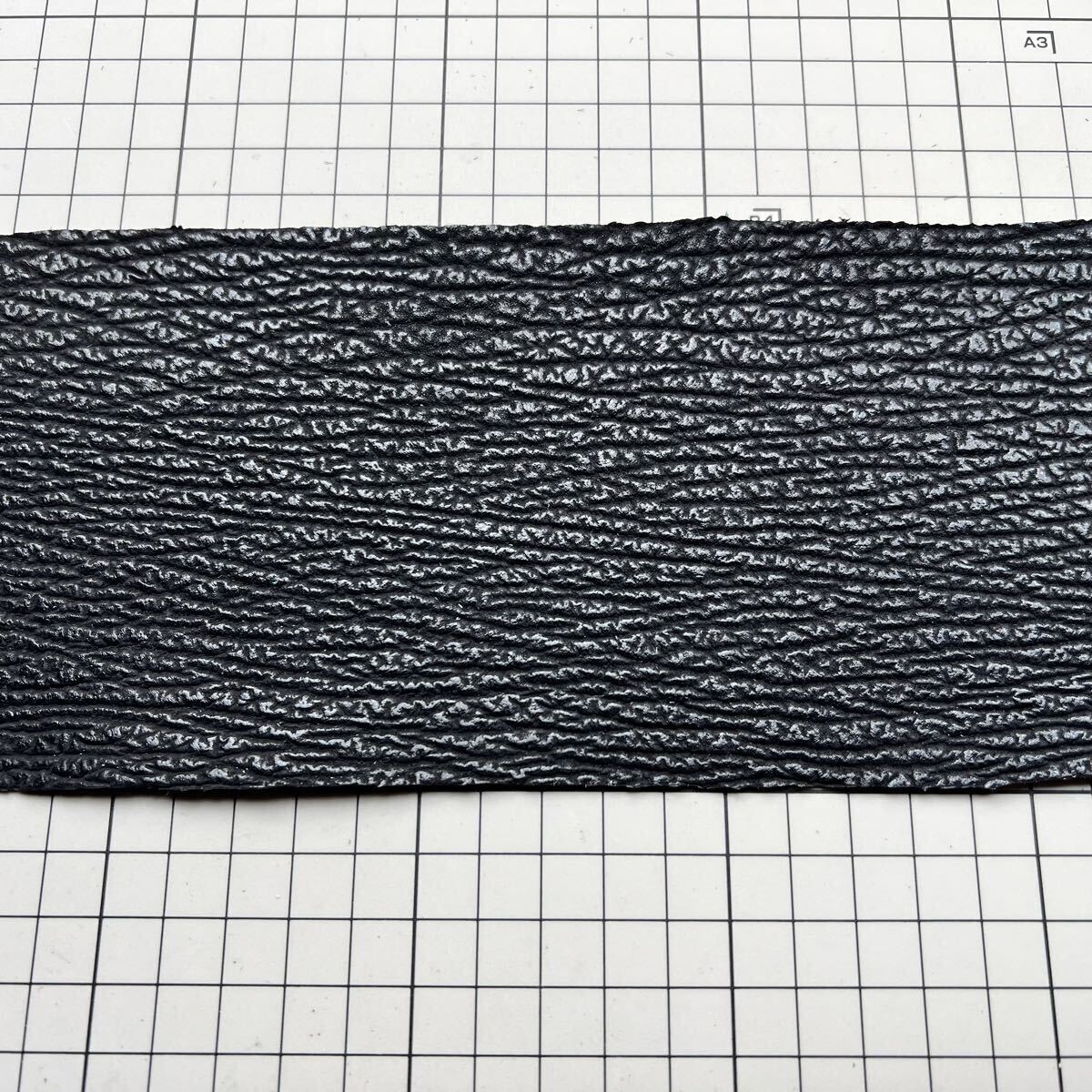 細かなシボが特徴のシャークスキンは鞣し加工が施されております。谷部は艶消しで山部はかなり光沢感のある仕上げとなっております。