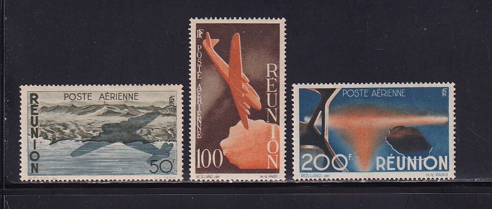 Product name: 9 レユニオン【未使用】<「1947 SC#C32-C34 (航空) レユニオン上空の飛行機」 3種完 >