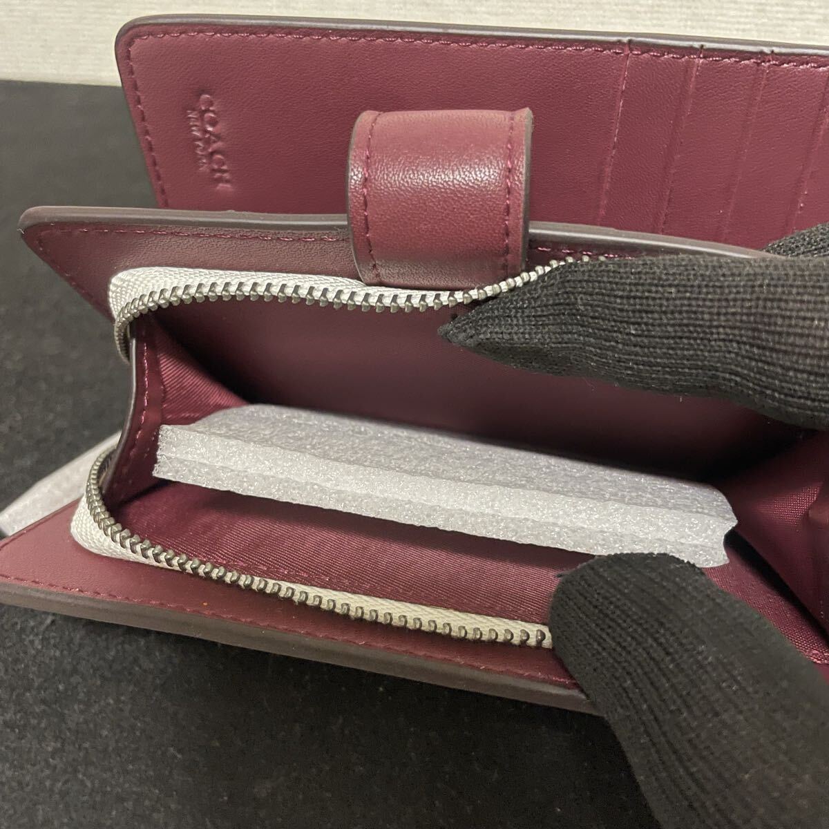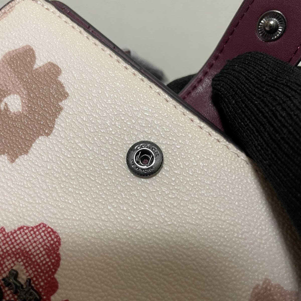 1円スタート! 訳あり 未使用保管品 COACH コーチ 二つ折り財布 ウォレット 花柄 財布 ホワイト系 ワインレッド L字ファスナー