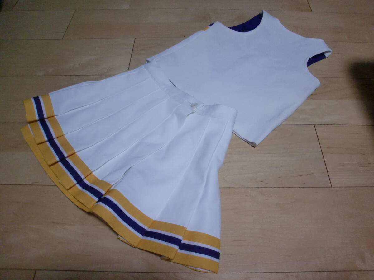 状態:トップスのロゴ横に薄擦れ汚れあり(擦り洗いで落ちそうです)。スカート・ウエストの内側に薄擦れ黄ばみがありますが大きなダメージは特にないようです。裏側に記名あり。