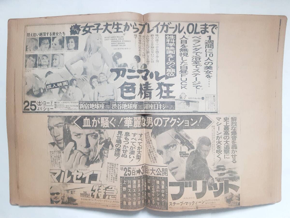新聞広告の切り抜きスクラップブックになります。「悪魔のいけにえ」は封切り後STチェーンで「世紀の対決 アマゾネス対