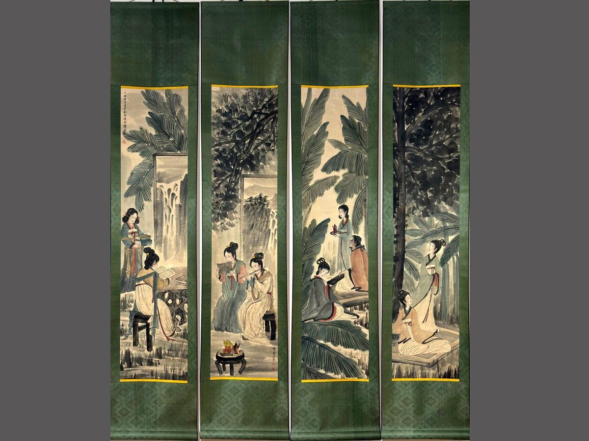 Product name: 【安】中国近時代画家「傅抱石書」紙本「人物図四条屏」掛軸 中国画 墨寶妙品 中国書道 古美術 394
