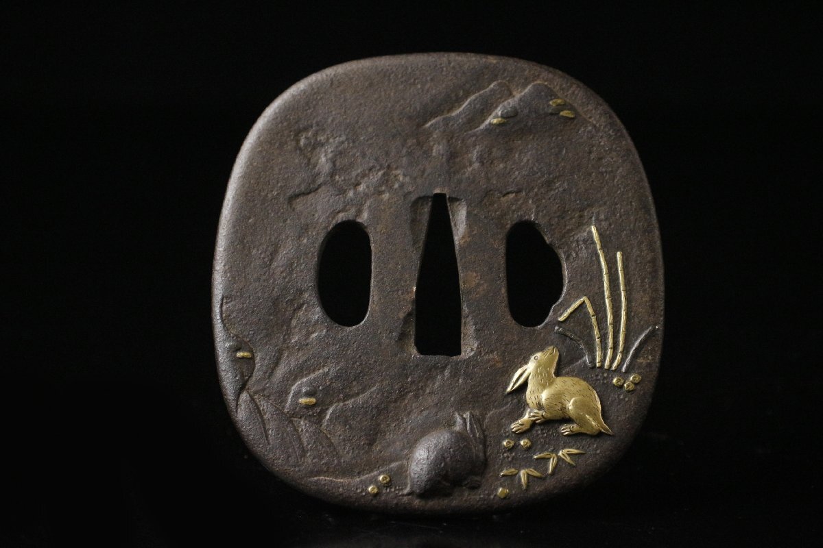 Product name: 【LIG】鮫皮巻柄刀拵 102㎝ 黒塗鞘 唐草彫金縁頭鐺 鉄地金銀象嵌 兎図鍔 外装 刀剣武具 [.RR]25.10