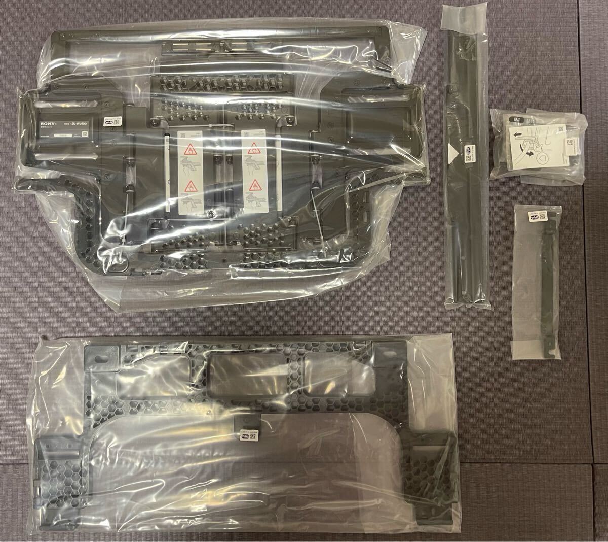 電気工事者が説明書とテレビ裏に直接取り付ける金具を開封したのみで、他のパーツは開けていません。