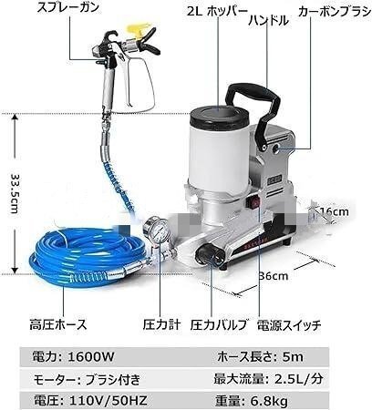 Product name: エアレスペイントスプレー 2.5L/分 ペイントスプレー 1600W 電動ペイントスプレー 2L