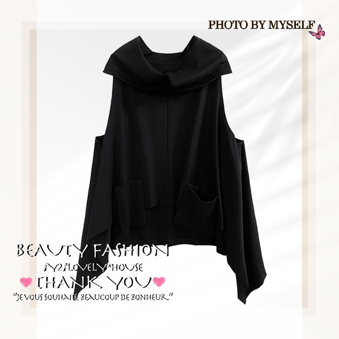 Product name: ■~3L4L5L*2枚/ドレープアシメトップス+ラウンドネックシャツ*黒白