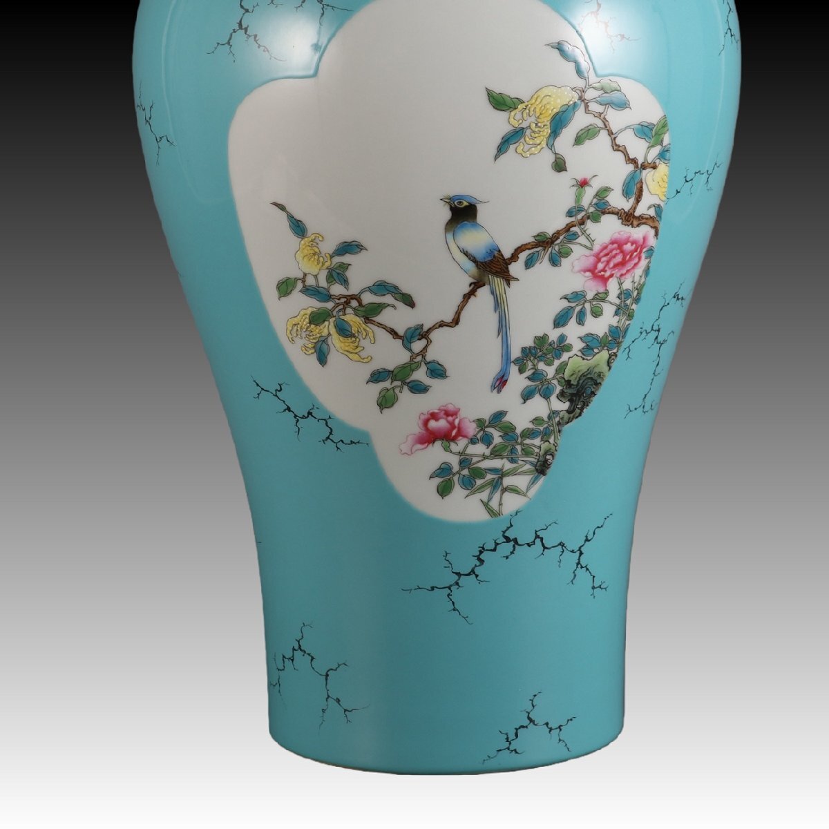 Product name: 【安】清時代 大清雍正年製 松石緑地開窗粉彩花鳥紋梅瓶 共箱 唐瓷 古陶瓷 中国古美術 古董品 239