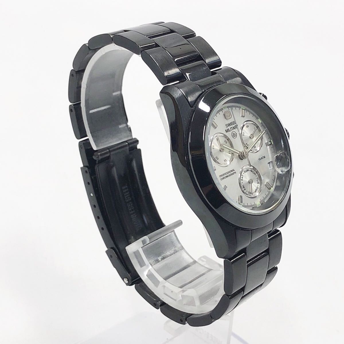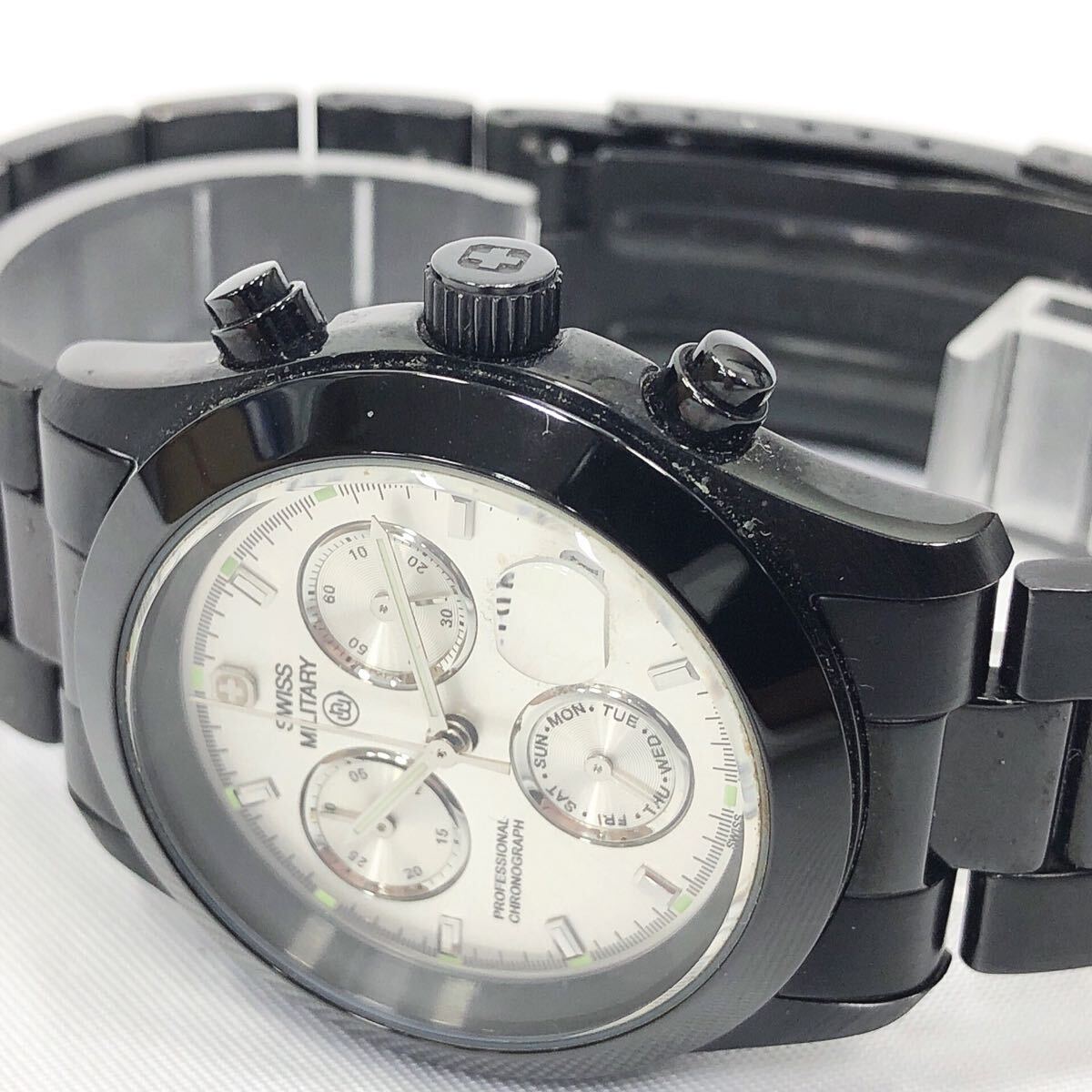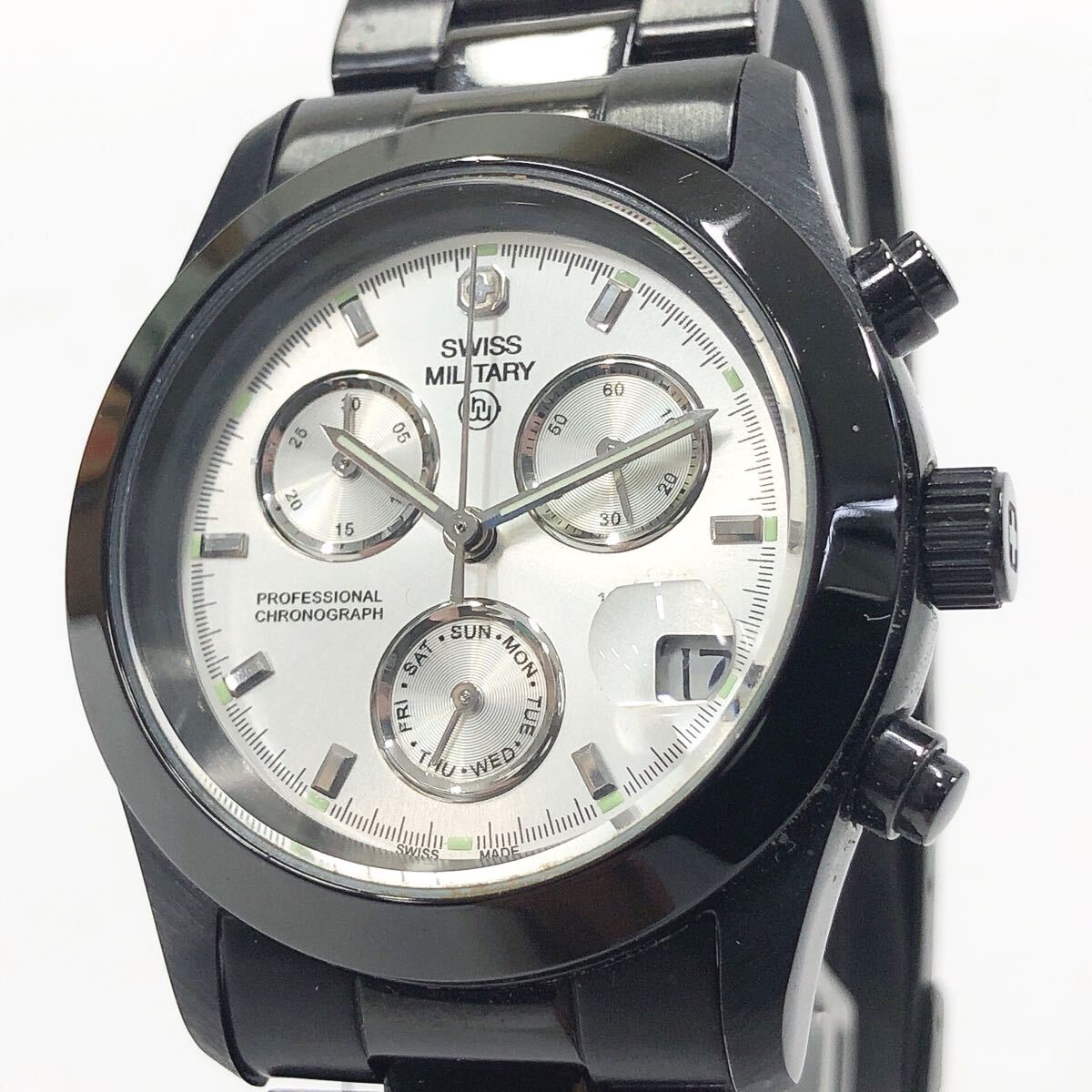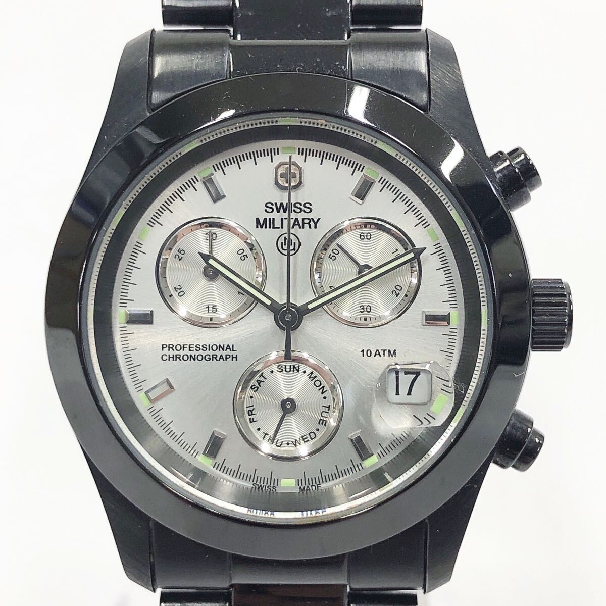 ★4-1011 SWISS MILITARY スイスミリタリー HANOWA メンズ腕時計 10198M クロノグラフ ブラック クオーツ アナログ デイトWatch