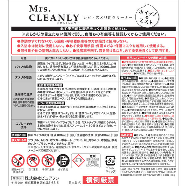 Product name: 送料300円(税込)■lc212■ミセスクレンリー カビヌメリ用クリーナー ホイップ&ミスト2kgセット 9570円相当【シンオク】