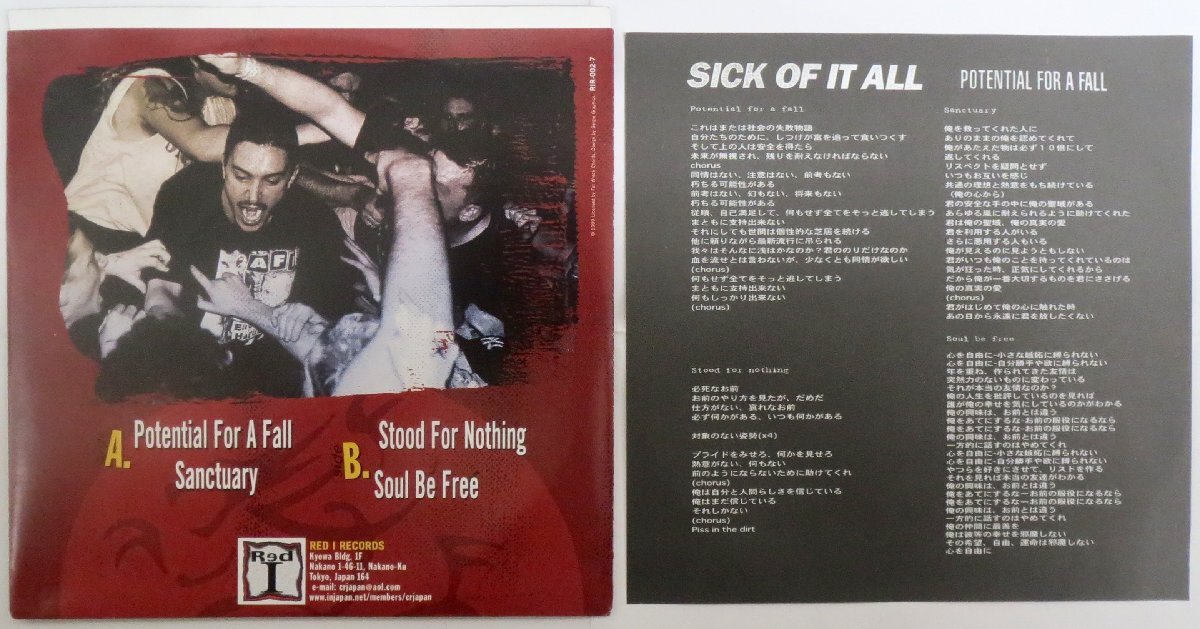 SICK OF IT ALL / POTENTIAL FOR A FALL. / RIR-002-7 [シック・オブ・イット・オール, VINYL, 7inch, EP]