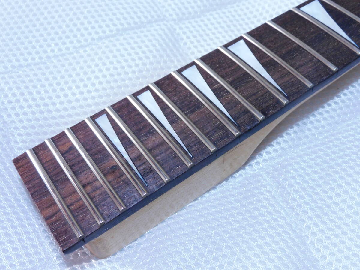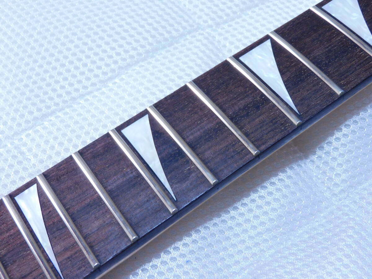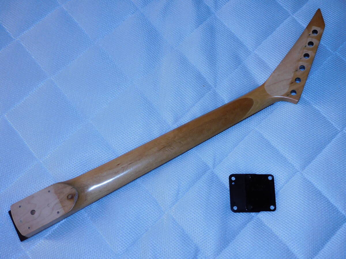 「グローバー.ジャクソン/GROVER.JACKSON」の「ランディーV」に付いていたシャークフィンインレイ「鍔だし24フレットネック/324ミリスケール」のネックです。ヘッド裏にシールの剥がし痕があります。ネックエンドにV-51他のスタンプがあります。画像のように、中古なので経年使用による小キズや塗装の経年劣化がります。フレットは70~80%以上残っています。トラスロッドは動作確認済で問題ありませんでした。現状でネックはストレートに調整しています。取り付け用オリジナルネックジョイントプレートが付いています。ネックジョイントプレートの刻印は「0510795」です。状態は画像でご確認下さい。当方にて出来るだけのクリーニングを致しましたが、落札者様でメンテナンスしてお使い下さい画像やコメントをご参考に入札お願い致します。それではオークションが終わりますまでよろしくお願い致します。あくまでも中古品の為落札後のクレームやキャンセルはご遠慮下さい。中古品なのでキズや経年劣化等些細な事や、完璧な商品をお考えの方は入札をお控え下さい。ご理解の上ご入札下さい。オークション開催中の入札の取り消しもお受け出来ません。梱包送料は九州から東北までは1500円、沖縄2200円、北海道は2300円です。