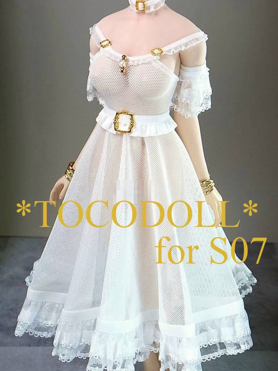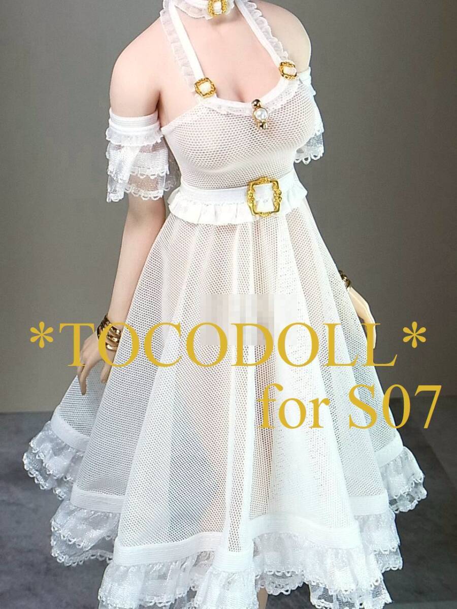 *toco*Phicen/TBLeague用 S07 フレアワンピースセット アームカバー付/白