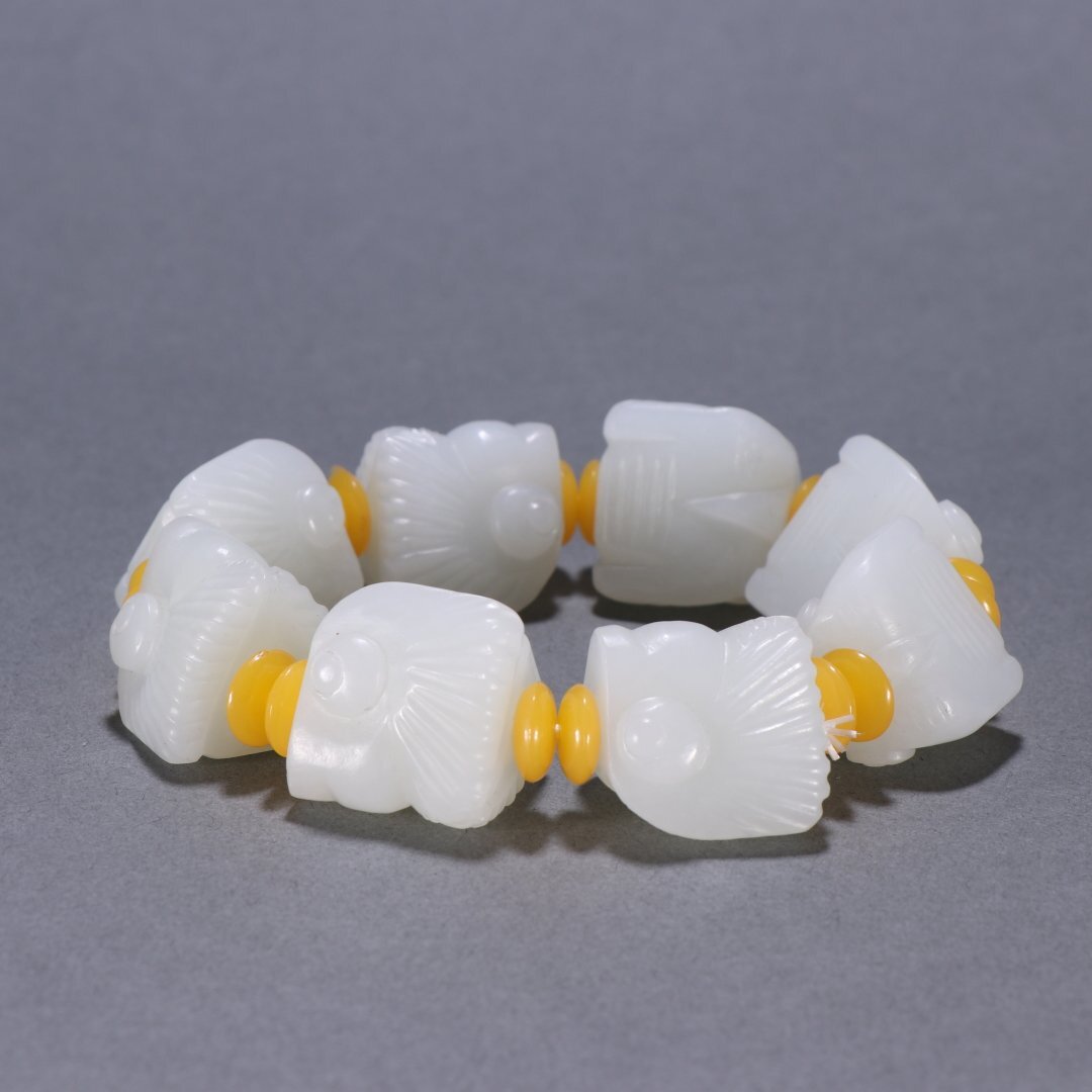 Product name: 【安】清時代 和田玉 魚紋手串 極細工 古置物 古擺件 中国古美術 古美味 時代物 古董品 257