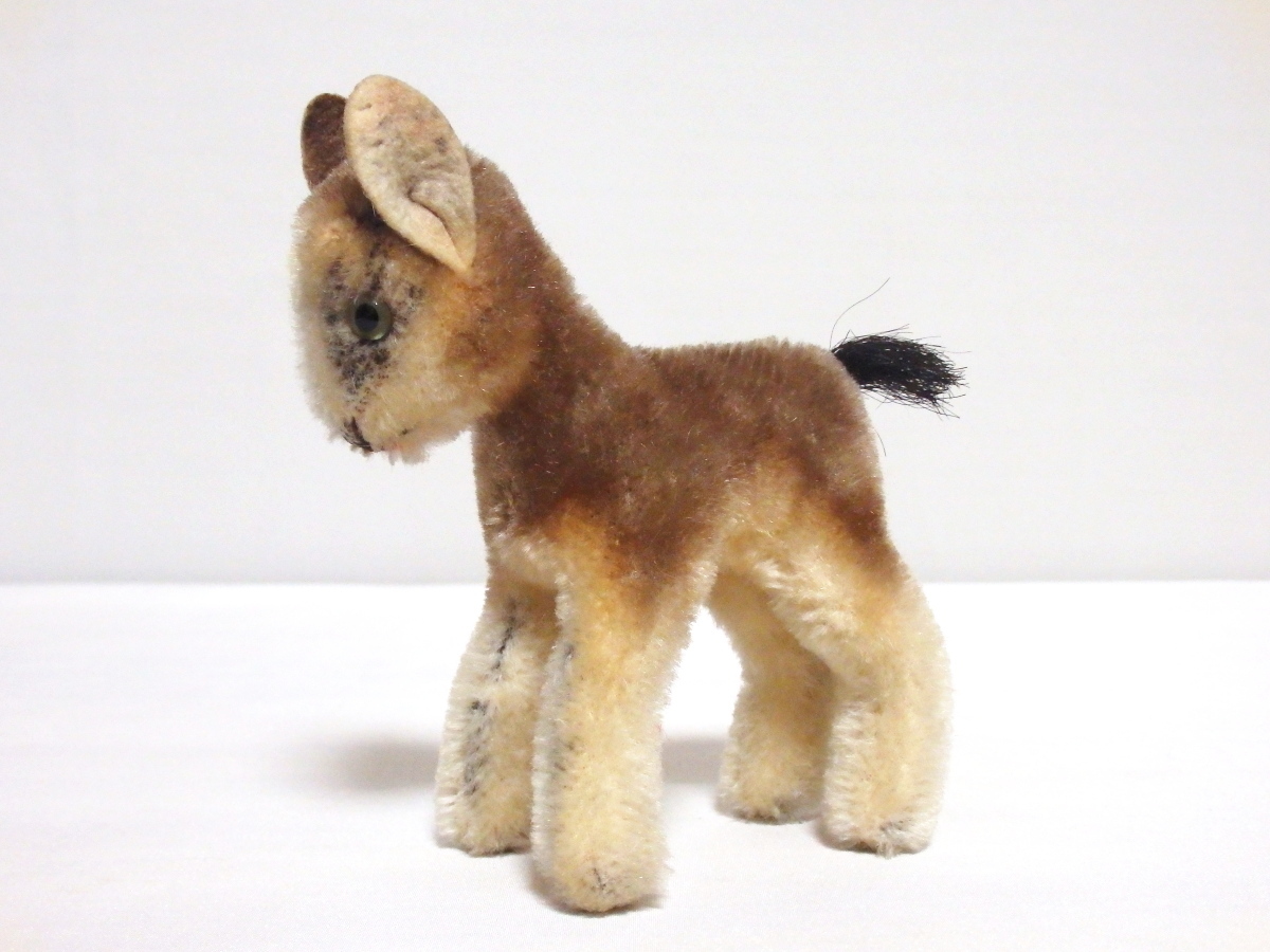 ★シュタイフ社で1961-70年に製作されていたシャモアです。発売から年数たっているヴィンテージ品ですので経年のくすみ・薄汚れがあり年代なりの古ぼけた印象です。画像をご確認の上ご入札お願いします。他は特に目立つダメージはないようです。細い体に愛嬌ある表情で、アンティークの風合いの良く出た、素敵なシャモアさんです。(状態の感じ方は個人で違いますので、必ず画像をご確認の上ご入札下さい)