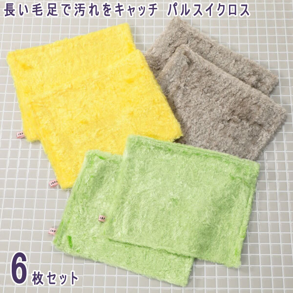 長い毛足で汚れをキャッチ パルスイクロス 特別6枚セット キウイミックス 5537円相当