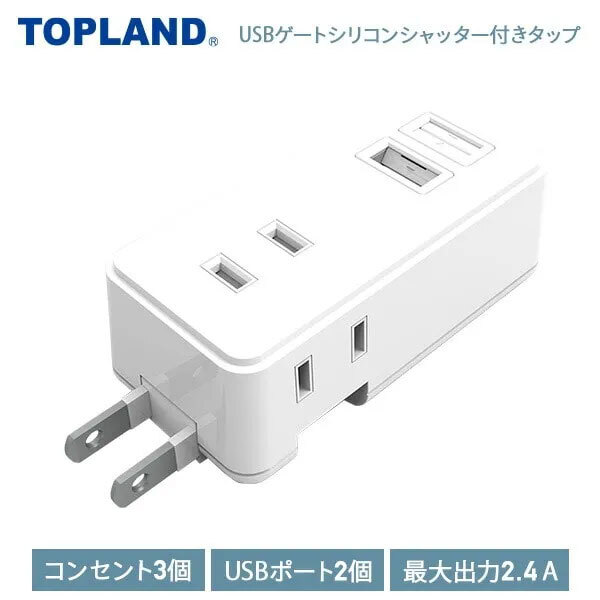 Product name: 送料300円(税込)■ym204■(250924)トップランド USBゲートシリコンシャッター付きタップ 電源タップ GT1-WT【シンオク】