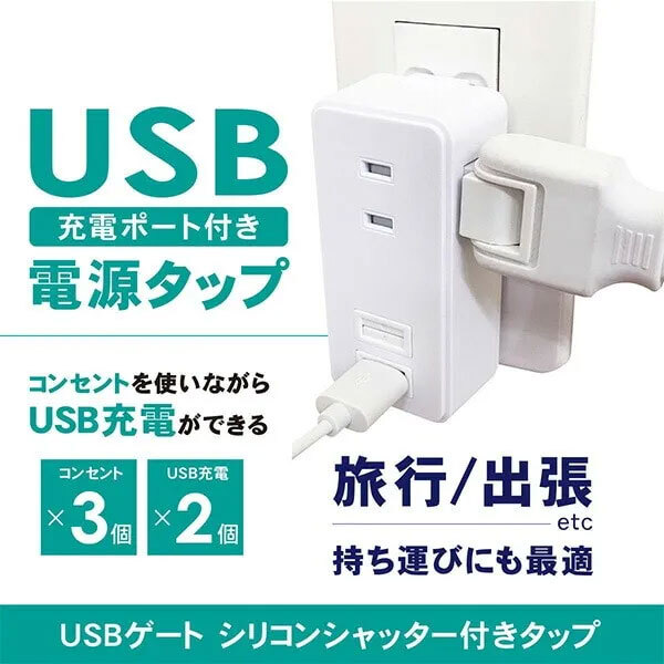 ●USB充電ができるシリコンシャッター付き電源タップ