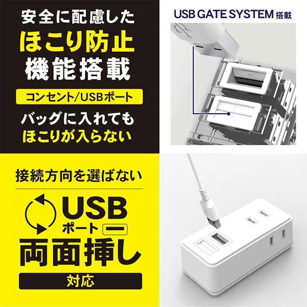 送料300円(税込)■ym204■(250924)トップランド USBゲートシリコンシャッター付きタップ 電源タップ GT1-WT【シンオク】