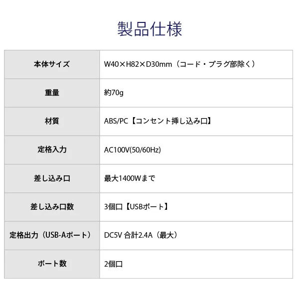 コンセント挿し込み口:定格入力:AC100V(50/60Hz)