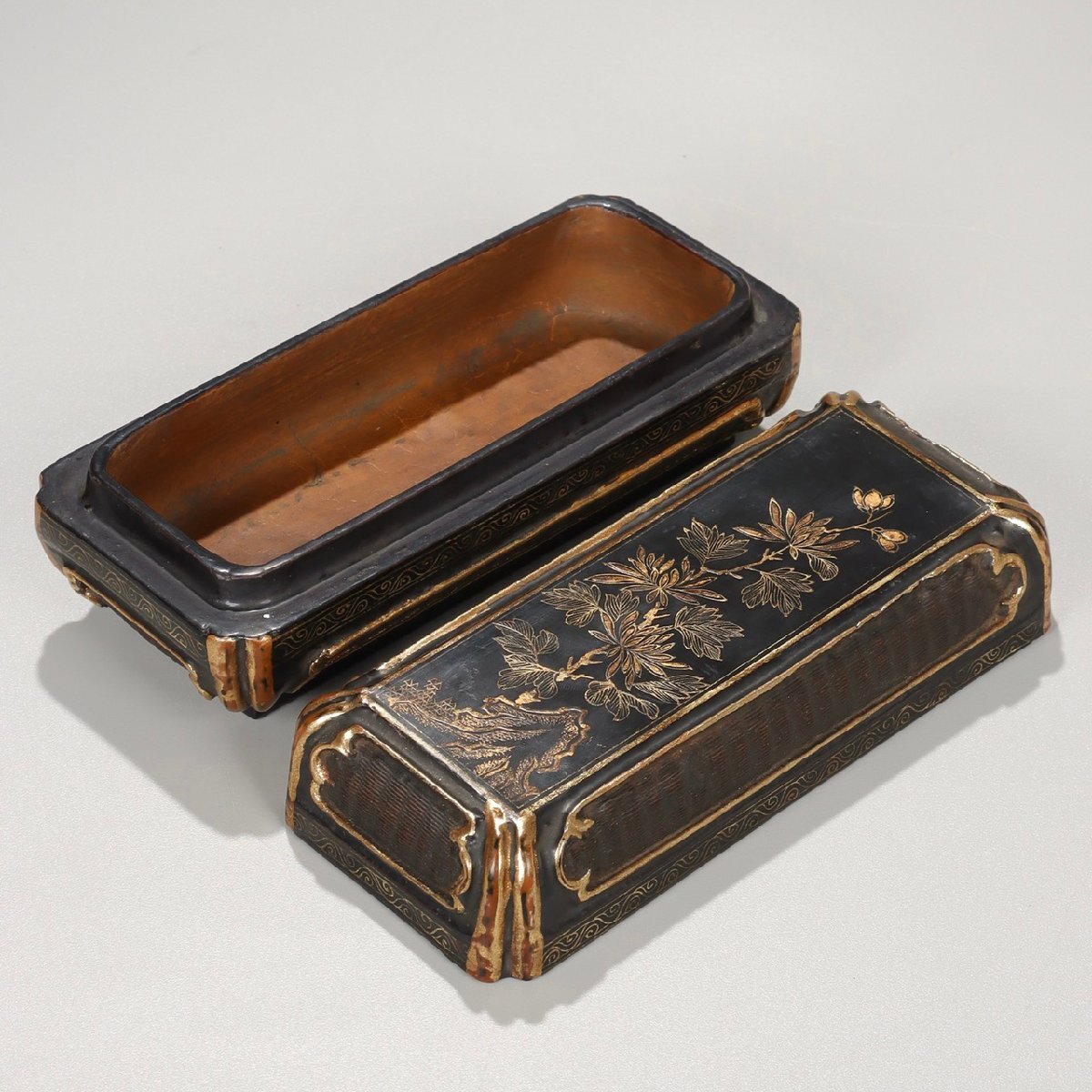 Product name: 【安】清時代 漆器 蒔絵 竹編菊花紋箱 極細工 古置物 古擺件 中国古美術 時代物 古董品 235