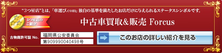 “3つ星店”とは「車選びドットコム」独自の基準を満たした販売店だけに与えられるステータスシンボルです。