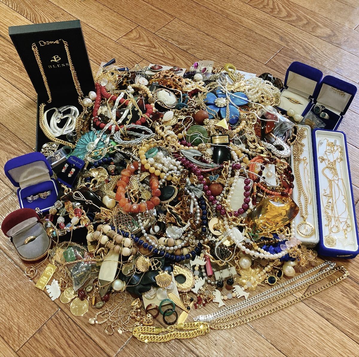 大量5kgまとめ天然石パール刻印925ネックレス喜平ブレスレット指輪イヤリング瑪瑙ブローチ/インゴット/ヘアアクセサリー中古イミテーション