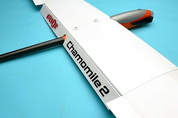 シングルフラップで、フラップ付きグライダーの入門機「カモミール」は、発売から7年が経ちました。大幅に進化した「カモミール2」の登場です。濃いオレンジ色は視認性抜群。翼長は翼端が尖って1780mmから1910mmになりました。尾翼の形も変わりシャープなイメージに。V角度も、105度から98度になり、空気抵抗が減っています。飛ばし比べてわかる性能差を経験してみてください。