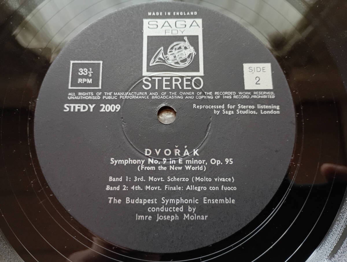 IMRE JOSEPH MOLNAR指揮による、ドヴォルザーク:交響曲第9番(1967年)。英SAGAレーベルのUK盤です。