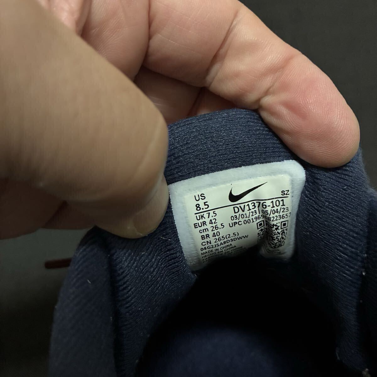 シックなネイビーをベースに、ホワイトのオーバーレイを合わせた2トーンカラーでアッパーが構築されており、シューレースロックやヒールのジャンプマンロゴにはレッドを採用。
