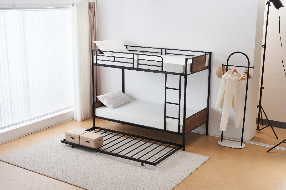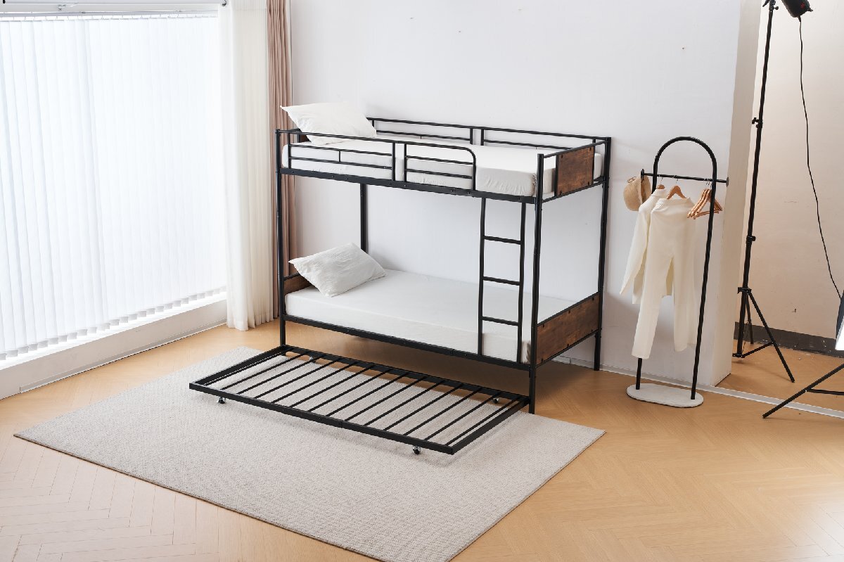 Product name: 【国内発送】【新品】【三段ベッド 移動式引き出し付きベッドフレーム】 パイプベッド シングル 木 収納 北欧風 子供部屋 スチール 耐震