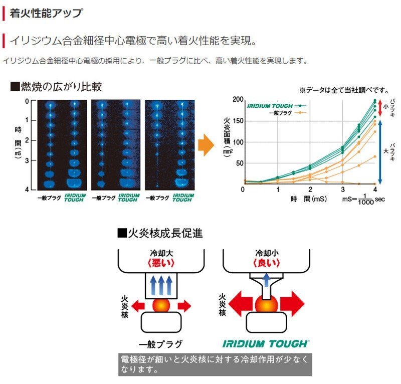 安定した着火性で加速性能アップ。エンジンの回転が不安定なときでも安定した着火を実現。それにより加速時の性能がアップします。