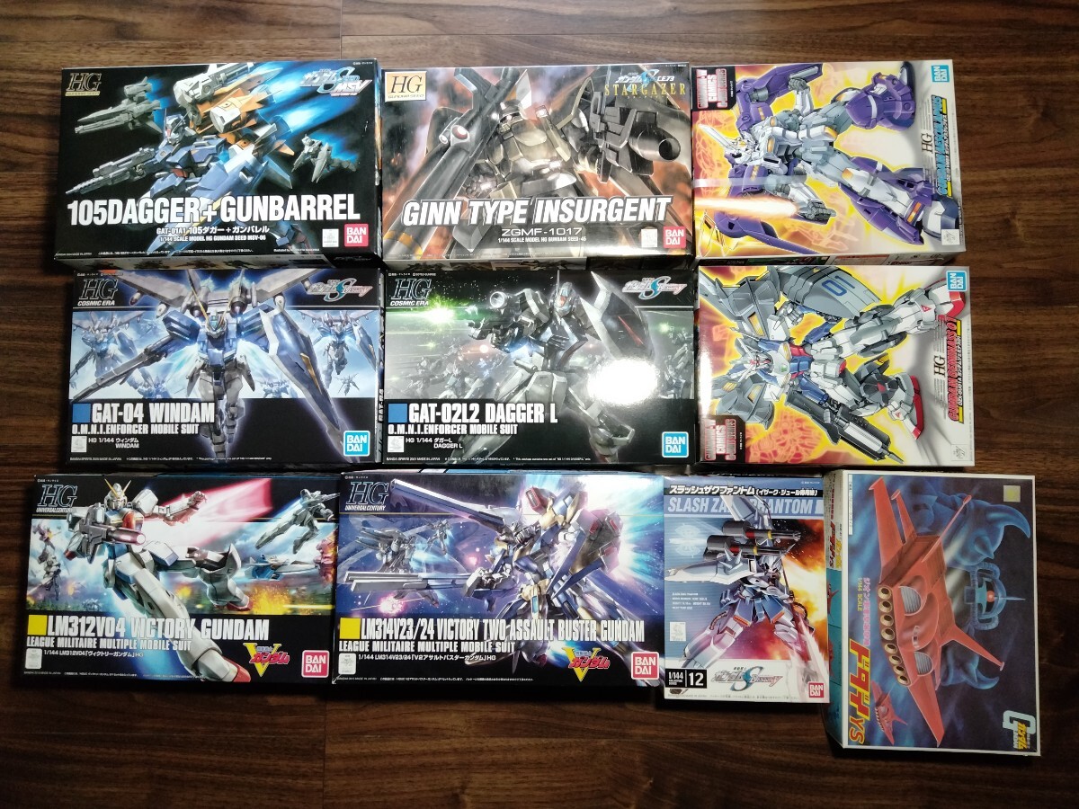 HGダガーガンバレル、ジンタイプサージェント、ウインダム、ダガーL,V2アサルトバスター、Vガンダム、旧キットガンダムジェミナス、アスクレプオス、ドダイ、スラッシュザクファントムイザーク・ジュール機。全10セット