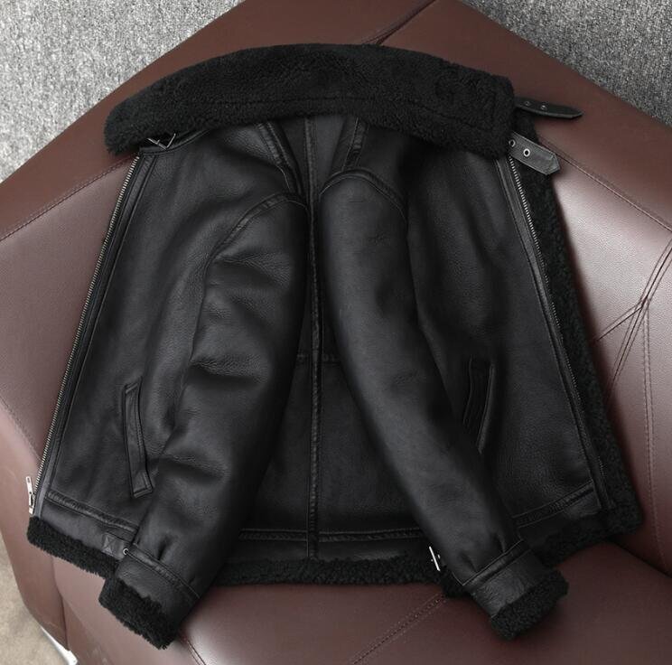 Product name: 秋冬新品 暖かい 本革ジャケットB3フライトジャケット  メンズ ムートン ウール 革ジャン 本革コート 黒