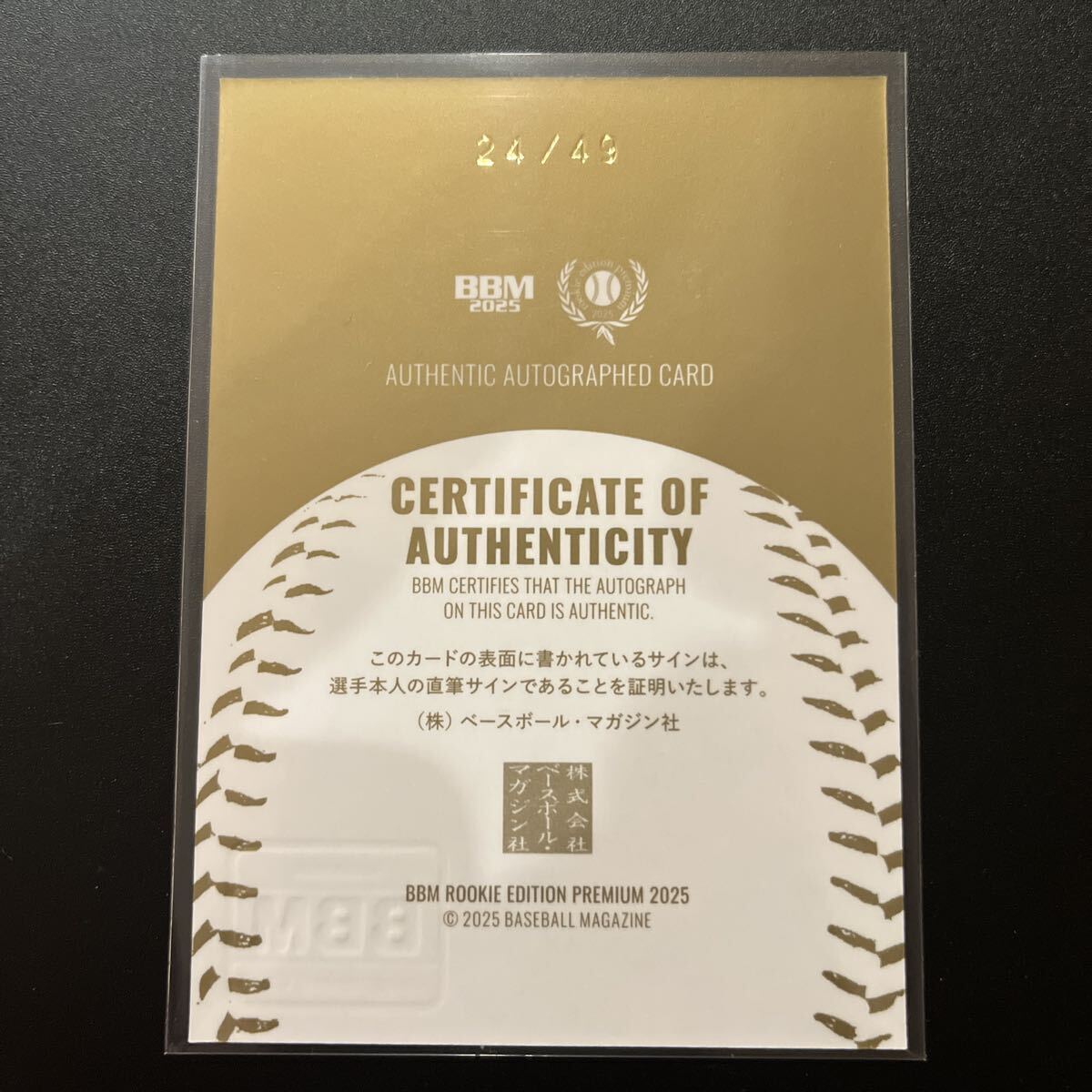 Product name: 2025 BBM ルーキーエディションプレミアム 渡部聖弥 直筆サインカード 49枚限定 24/49 埼玉西武ライオンズ 直書き