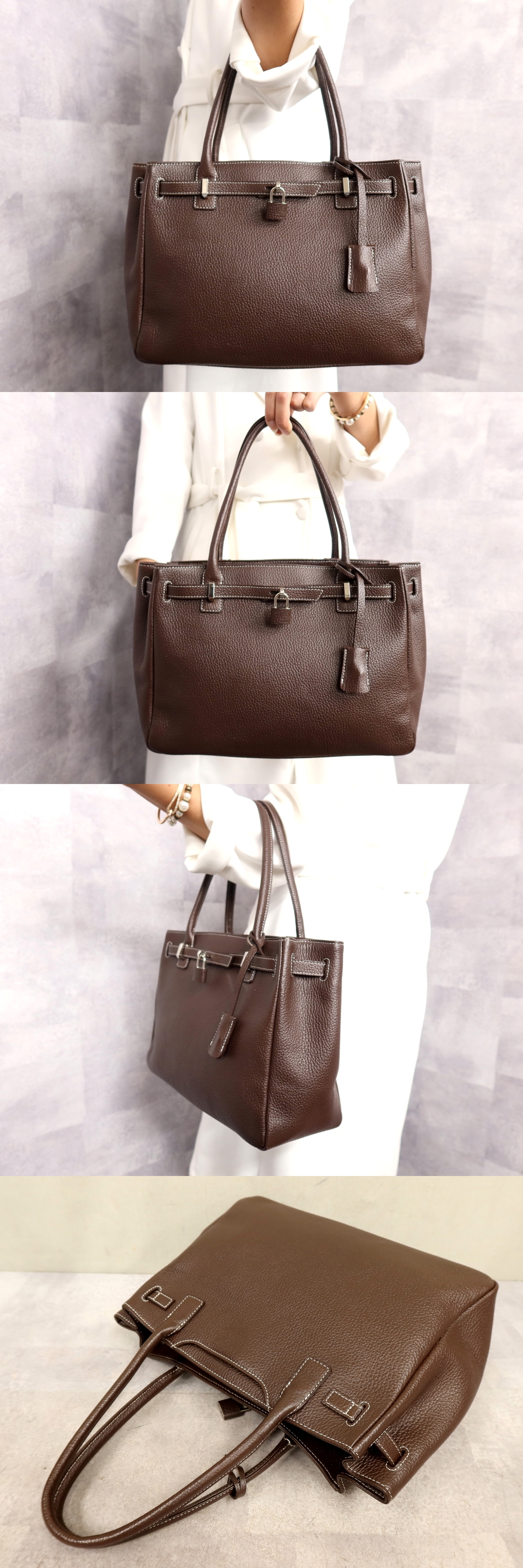 Product name: ●超美品●新品同様●den HAMANO 傳濱野●ミーティア●カーフ レザー 本革●ハンド バッグ●ダークブラウン●シルバー金具●B5●Js62126