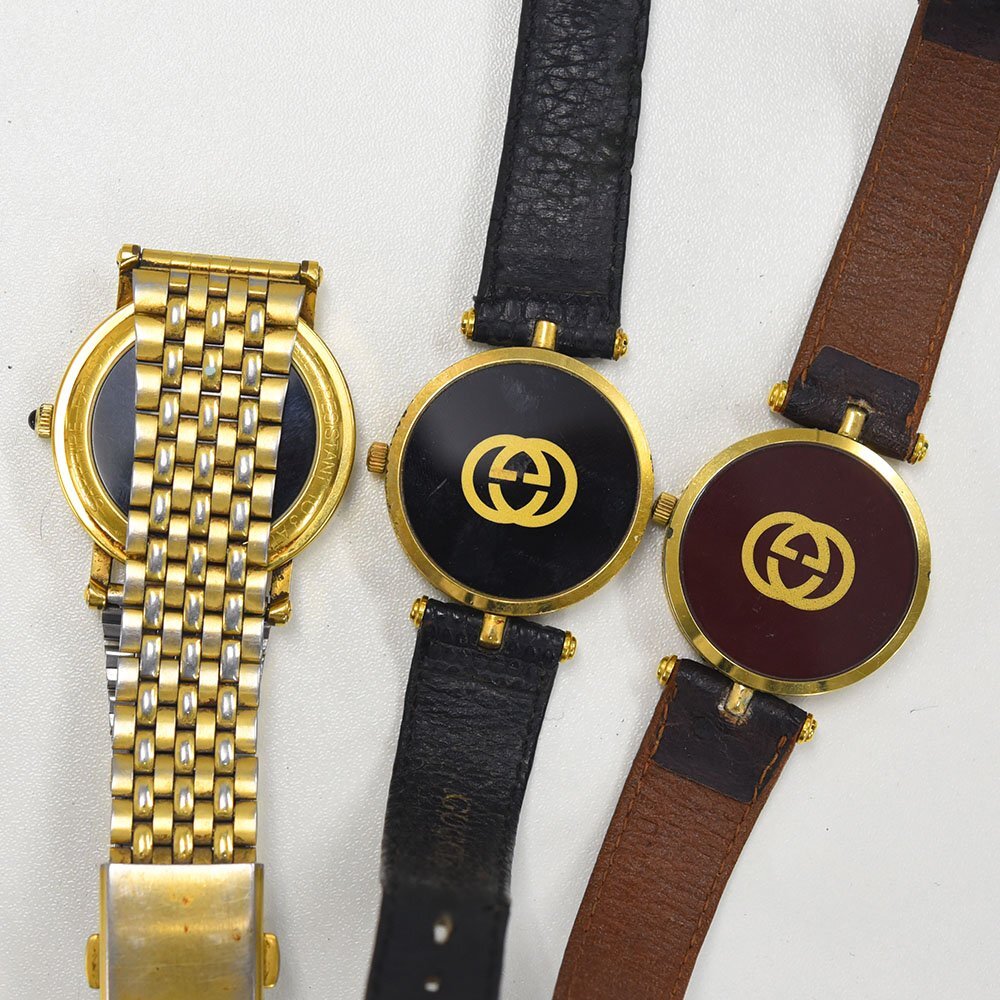 1円 可動品 2本 不動品 1本 腕時計 グッチ クォーツ メンズ まとめて 写真左不動 同梱不可