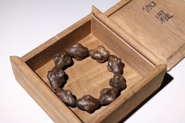 ◇商品説明◇ 沈香数珠の出品です。写真の木箱に収まっております。状態につきましては、スレ、キズ、ヨゴレ等がありましたので画像にて御確認の程宜しくお願い致します。