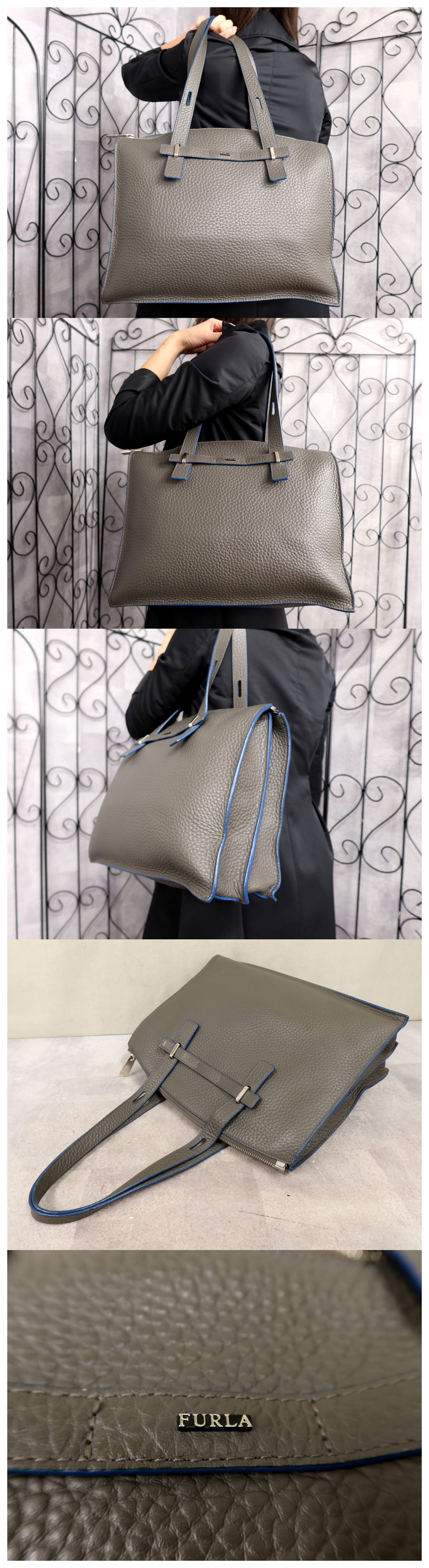 Store ●超美品●FURLA フルラ●メンズ●GIOVE ジョーヴェ●カーフ レザー 本革●トート バッグ●グレー●シルバー金具●A4 ビジネス●Js64228