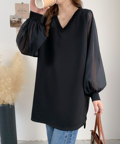 参考商品名:段ボールスウェット異素材ボリュウームスリーブチュニック