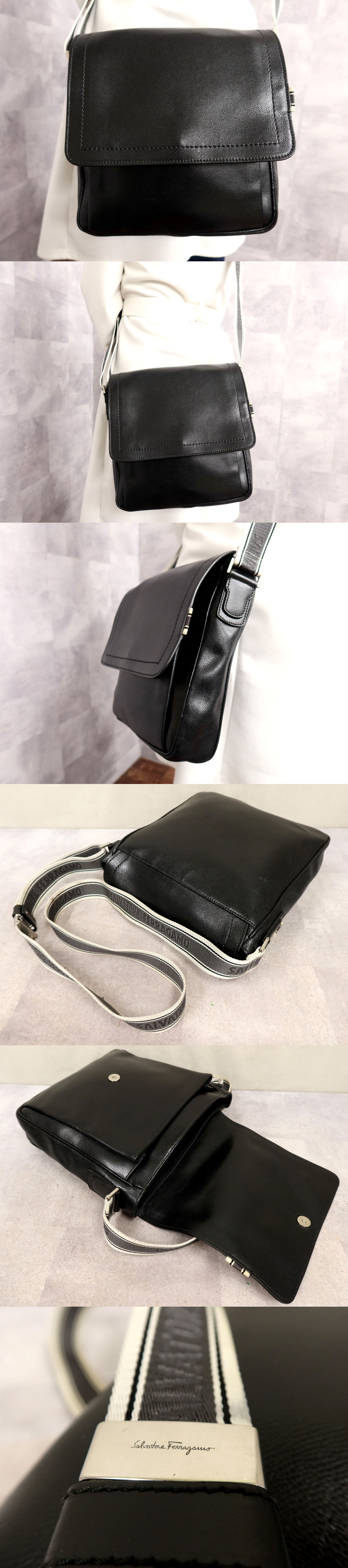 Product name: ●超美品●Salvatore Ferragamo フェラガモ●メンズ●カーフ レザー 本革●ショルダー バッグ●黒 白●シルバー金具●B5 かばん●Js65943
